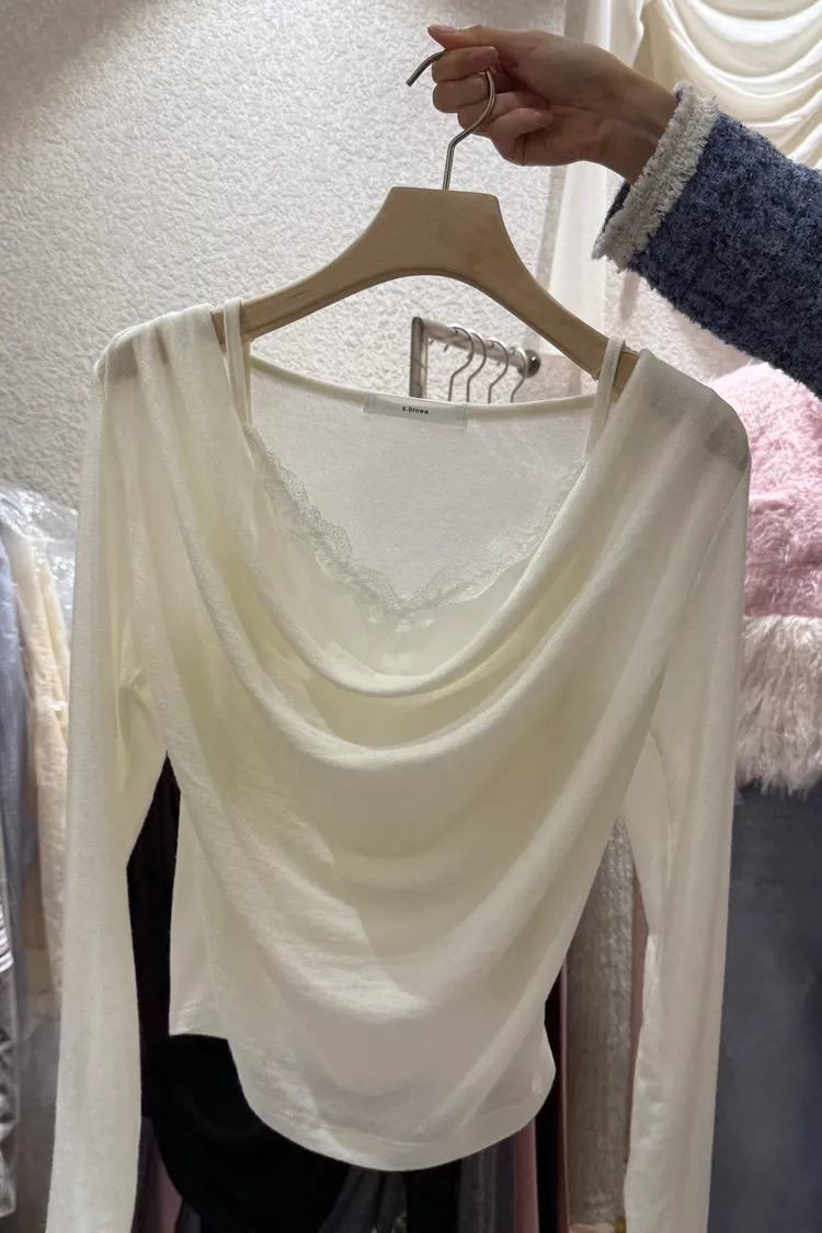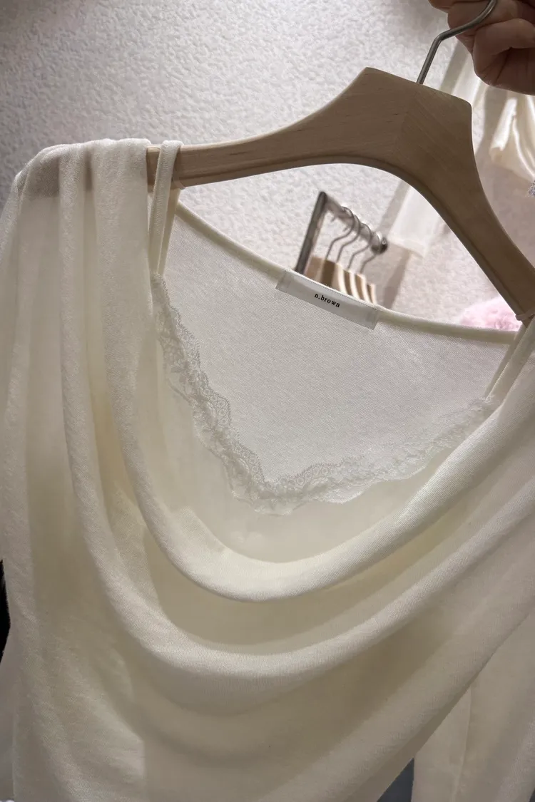 A05純慾假兩件蕾絲棉質上衣